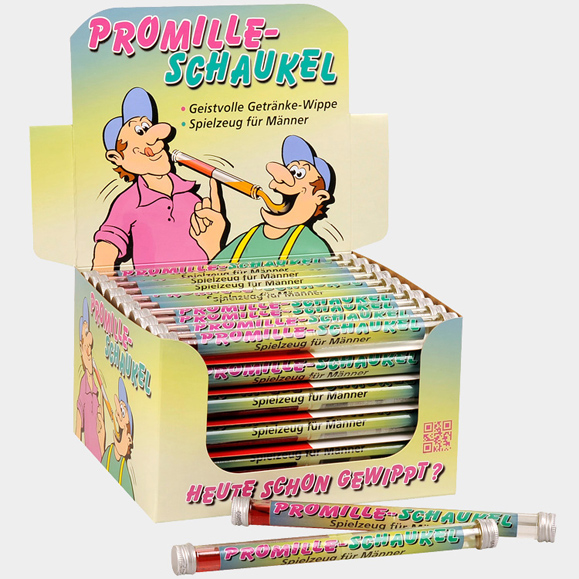 60 Röhrchen im attraktiven Verkaufsdisplay. Display gemischt mit den Motiven Pärchen-Drink, Partnertest und Liebesschaukel.